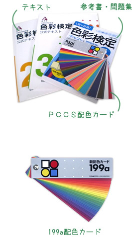 色彩検定テキスト、参考書、問題集、PCCS配色カードは揃っていますか?これらが色彩検定勉強必需品となります。