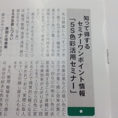 『すぐできる!誰でもできる!職場が見違える!5S色彩活用セミナー』の内容と様子を掲載