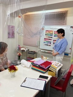 パーソナルカラーアナリスト養成講座終了後です。講座終了後とは思えないほど、全く疲れを感じさせない超スーパーウルトラハイテンションな笑顔です。