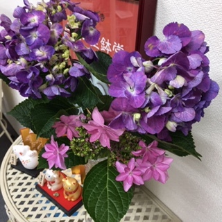 酸性に傾いた土では青系に、アルカリ性に傾いた土では赤系に変わるみたいです。