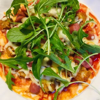 赤と白のソースで紅白のピザが完成です。